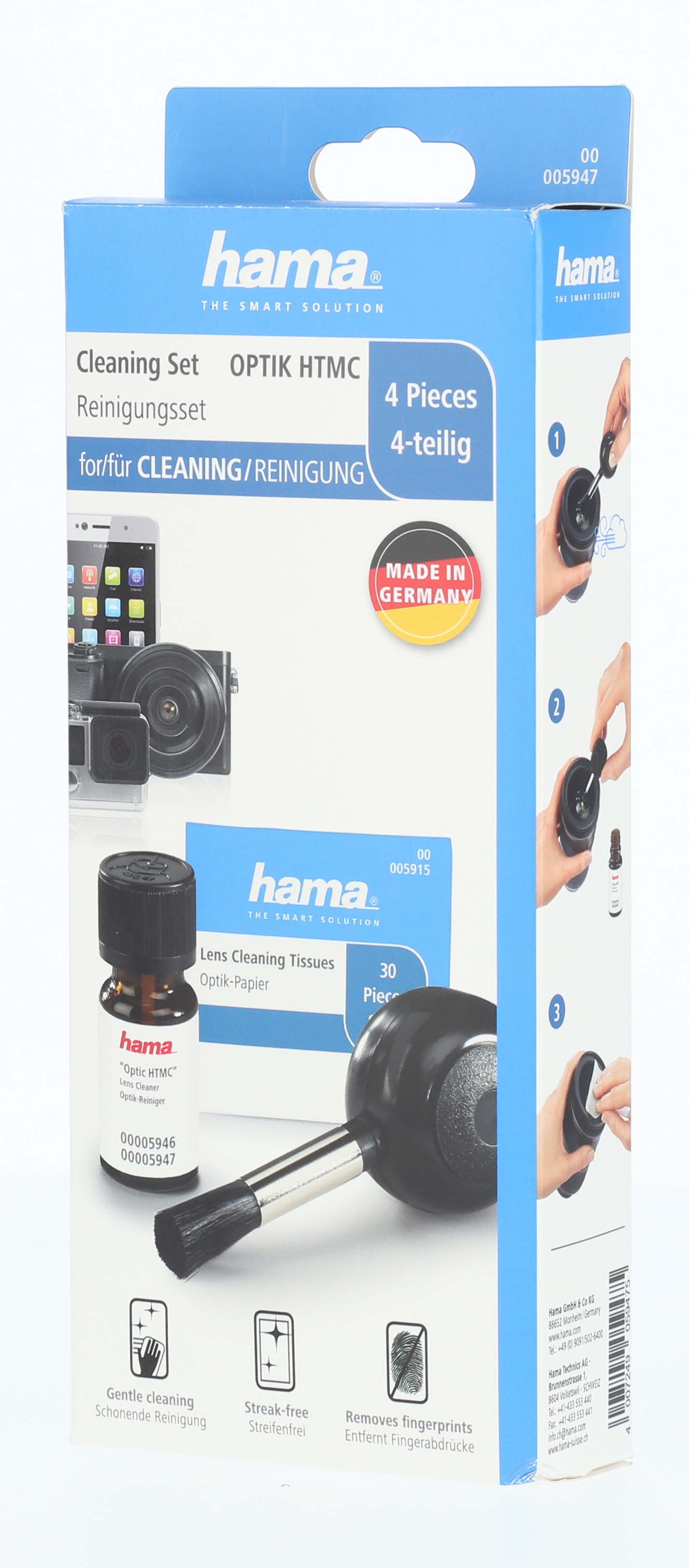 Set pulizia ottico HTMC, 4 pezzi, soffietto pneumatico, liquido 12 ml,carta ottica, sacchetta