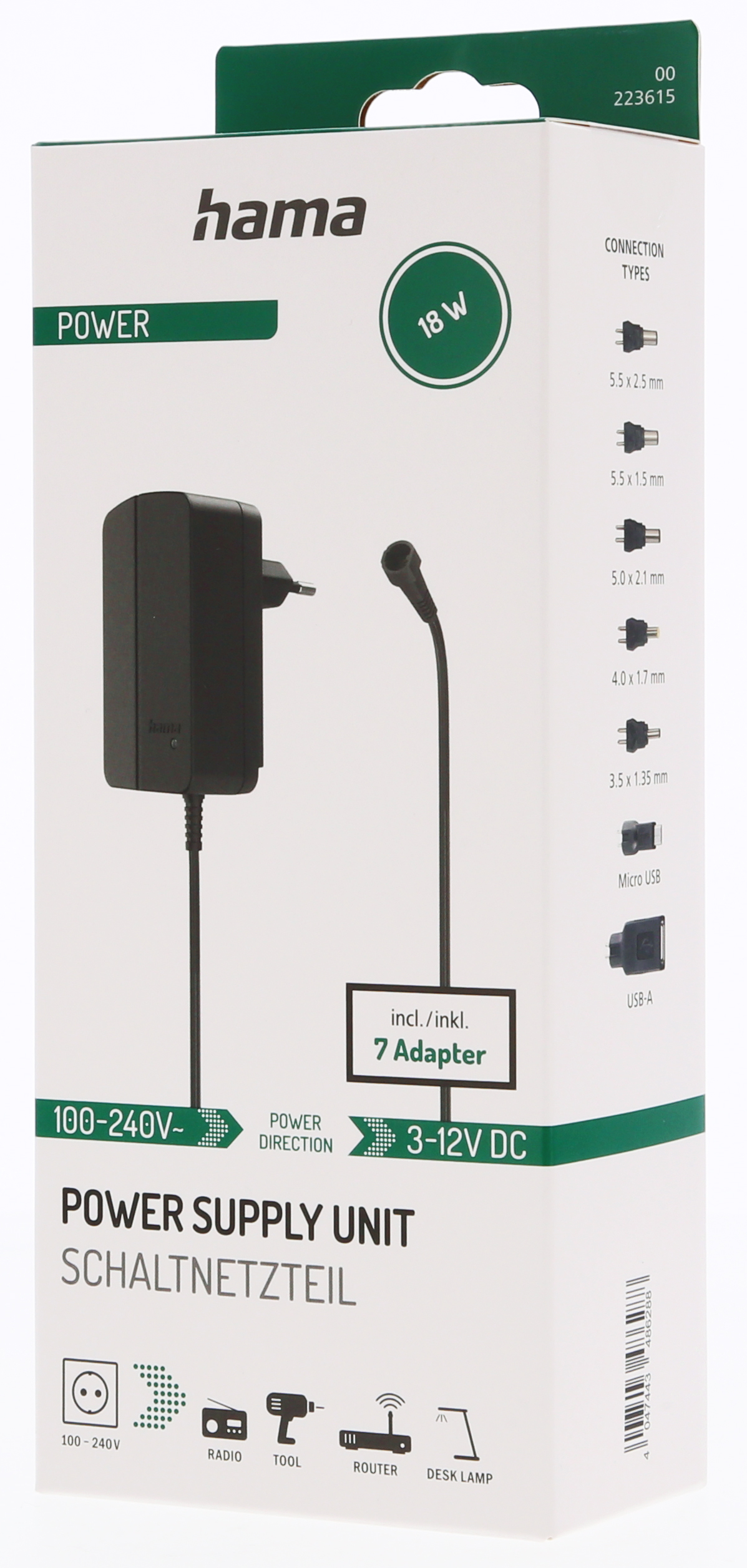 Potente: fino a 18 W / fino a 1500 mA in tutti i campi di tensione 3V / 4.5V / 5V / 6V / 7.5V / 9V / 12V